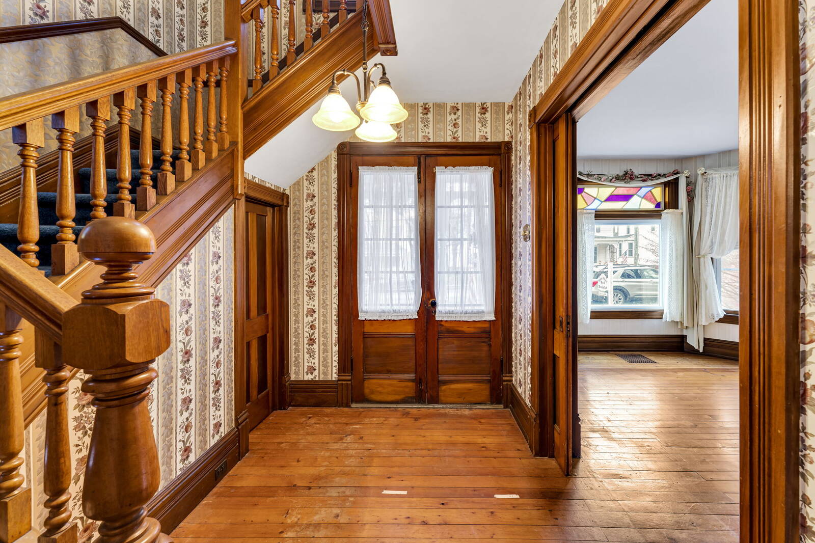 Step into the charm of a bygone era with this beautifully preserved Victorian home, adorned with exquisite gingerbread trim and built in the late 1800s. Lovingly updated and meticulously cared for, this property has welcomed guests as the beloved Main Street B&B for more than 40 years. Its longtime proprietors built a devoted clientele-many returning year after year for the unforgettable, famously indulgent breakfasts. Inside, the home shines with original period details, including stunning natural woodwork and elegant pocket doors in the double living room-an inviting space perfect for gatherings, celebrations, or cozy evenings in.